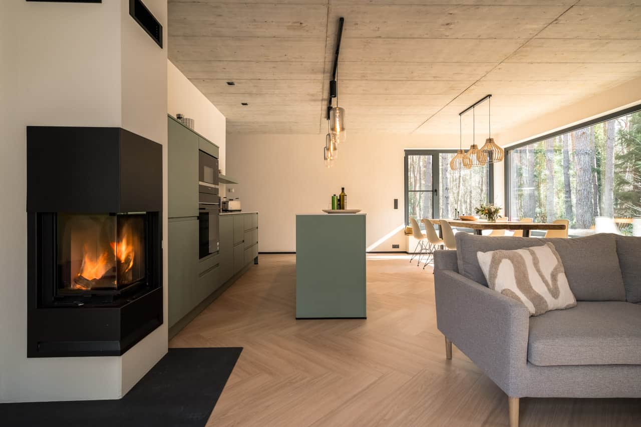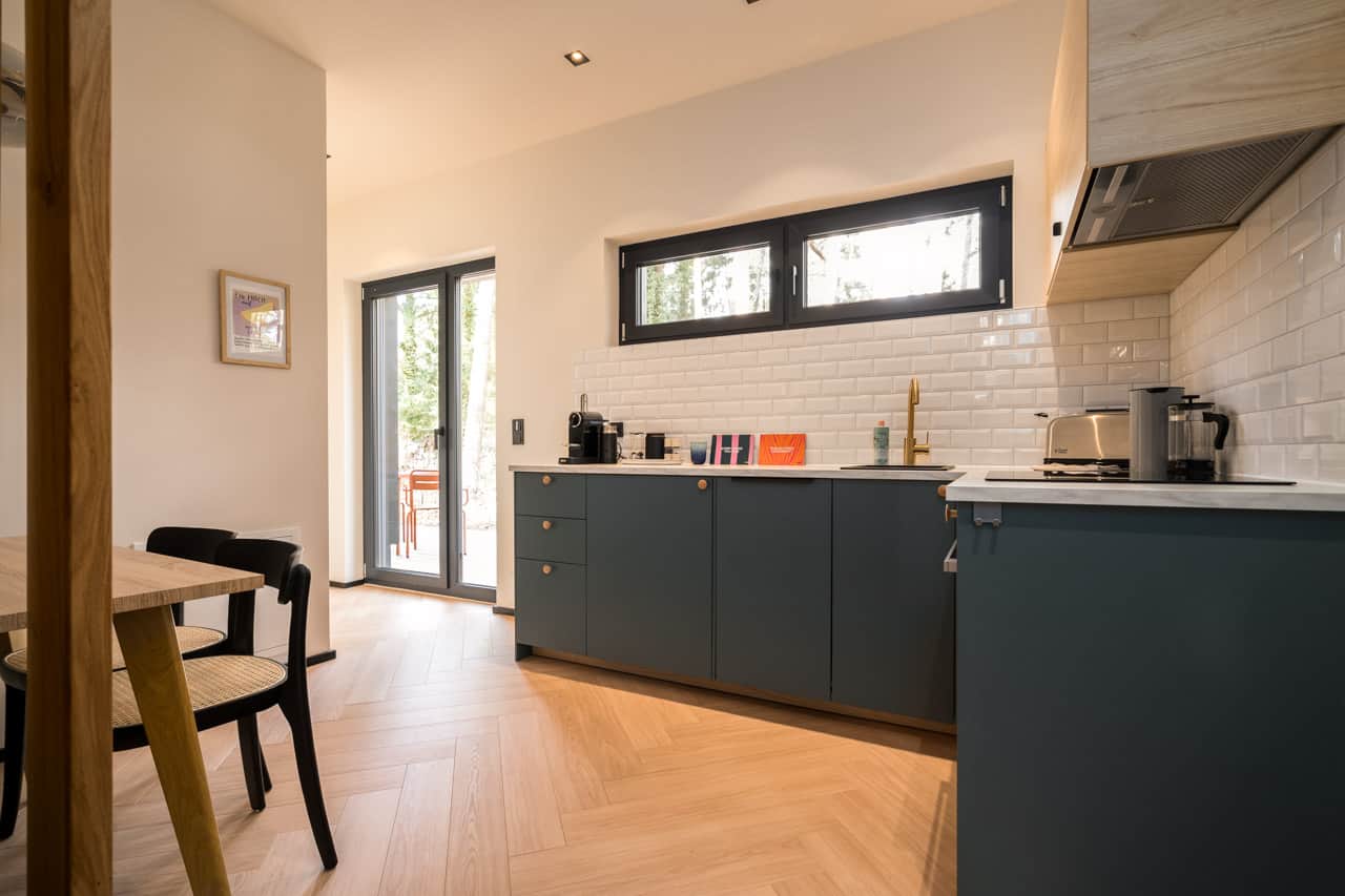Unser Retreat zwischen Meer und Wald bietet Natur und Entschleunigung. Raus aus der Stadt und ab an den Sandstrand: Die Waldvilla ist ein Ort zum Durchatmen – nur wenige Stunden von Berlin oder Hamburg entfernt. Rund um das süße Seebad kommen aktive Urlauber voll auf ihre Kosten. Ob Kitesurfen, Joggen durch den Küstenwald entlang der Ostsee oder Yoga auf der Holzterrasse bei Vogelzwitschern. Die Ausstattung macht die Waldvilla zudem zu einem idealen Ort auch für kleinere Team-Offsites und Kreativauszeiten. Separate Arbeitsbereiche, Glasfaser-Internet, Smart-TVs und eine moderne Wohnküche mit besonderer Küchenarchitektur dank Bora Kochsystem für gemeinsame Abende bieten den idealen Rahmen für Fokus, Austausch und Teamspirit. Sauna und Kamin laden nach ausgiebigen Strandspaziergängen ein, den Tag entspannt ausklingen zu lassen.